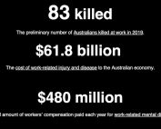 83 killed The preliminary number of Australians killed at work in 2019. $61.8 billion The cost of work-related injury and disease to the Australian economy. $480 million The total amount of workers’ compensation paid [...]